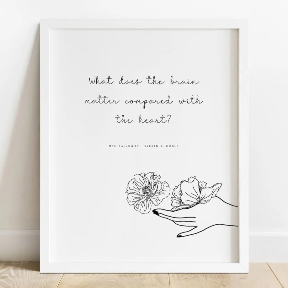 Paired with a minimalist black and white floral design, these prints are equal parts elegant, thought-provoking, and deeply literary—perfect for anyone who loves Woolf, modern classics, and the quiet beauty of words that linger long after you’ve read them.